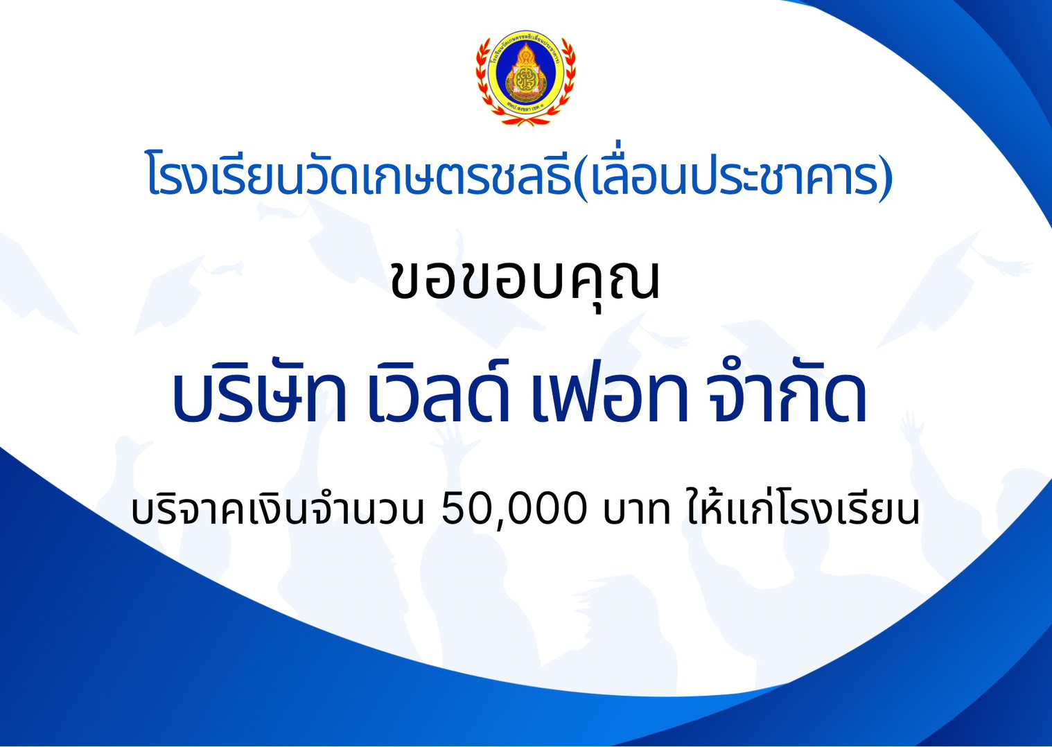 ยินดีต้อนรับเข้าสู่เว็บไซต์ โรงเรียนวัดเกษตรชลธี(เลื่อนประชาคาร)ค่ะ...
